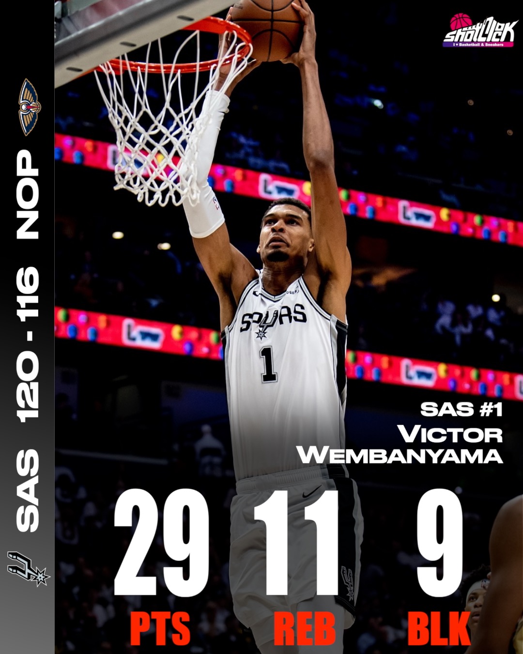 ウェンバンヤマ、驚異の9ブロック!スパーズを開幕2連勝に導く